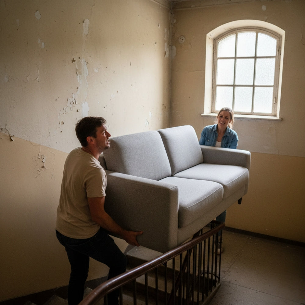 Plus besoin de prévoir la venue de livreurs : le canapé arrive dans un colis optimisé qui passe les portes, les escaliers et les ascenseurs.